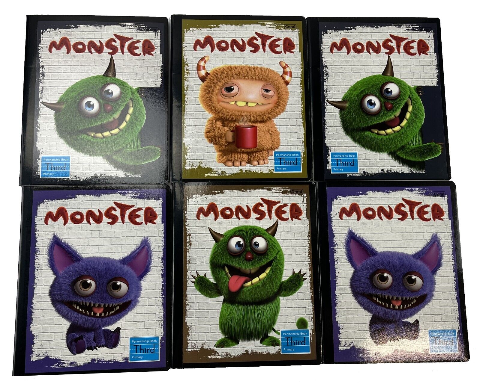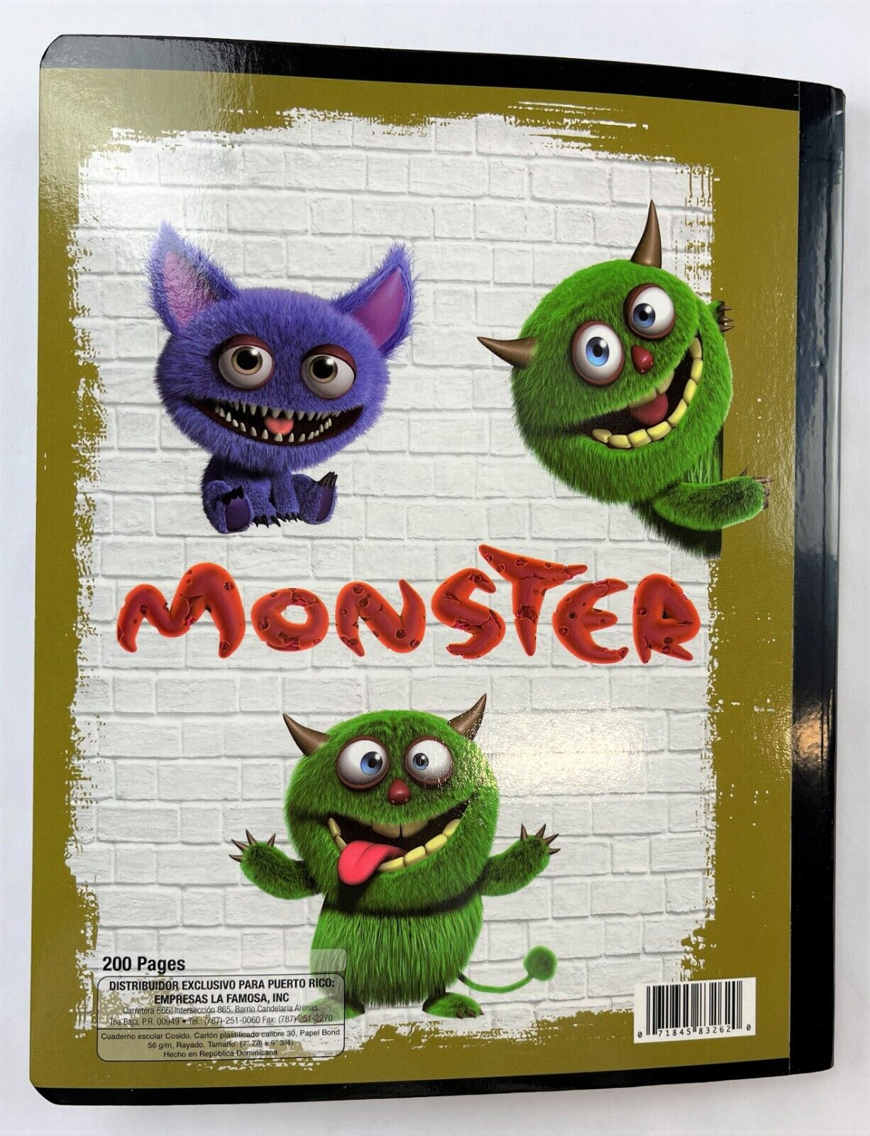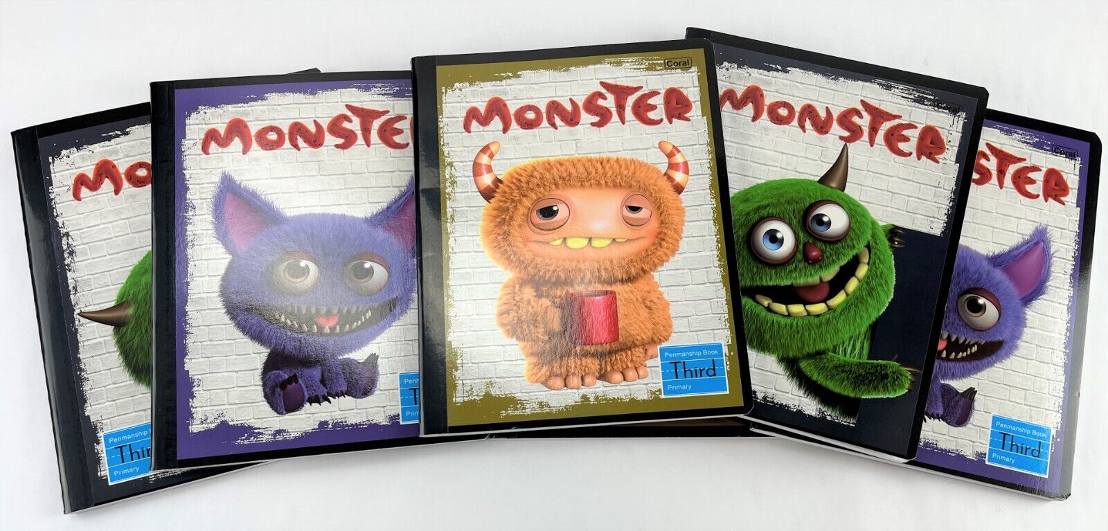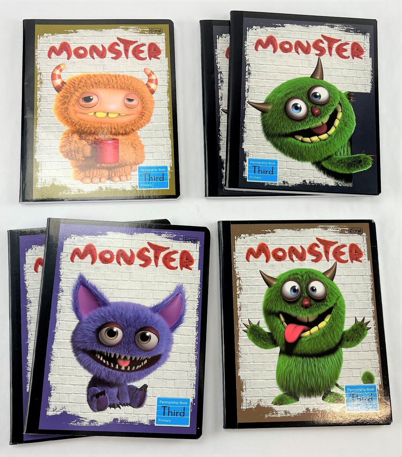 Monster Primary Kids Large Print Paper Composition Notebooks have 100 double-sided, primary penmanship wide ruled sheets of high-quality paper. Pages are securely sewn in, and the durable covers protect notes all year long.