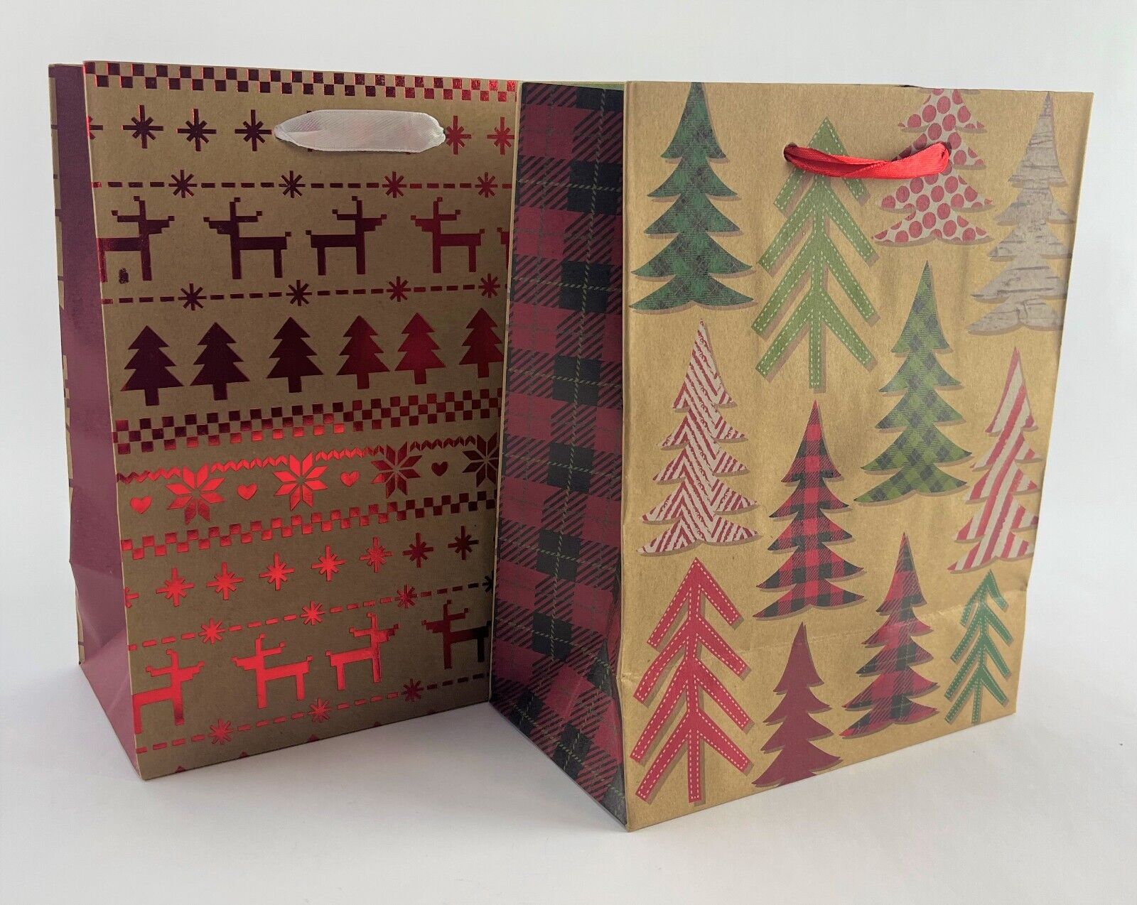 Stock up in style this season with classic Christmas gift bags in bulk. Cute and classic Christmas designs including Santa Claus, Snowman, Wreath, Reindeer, and lots of cute plaid and striped prints to coordinate with. Be prepared for holiday work parties, teacher gifts, white elephant exchanges, and last-minute raids of your holiday gift closet.