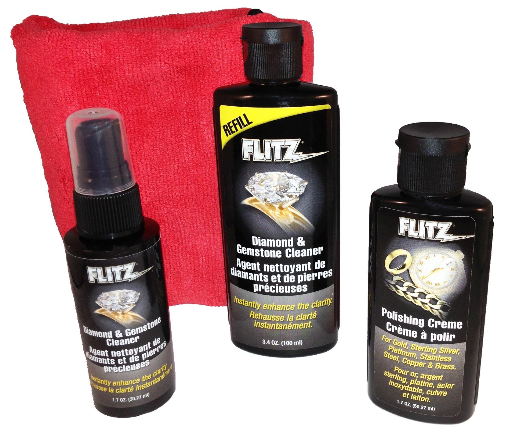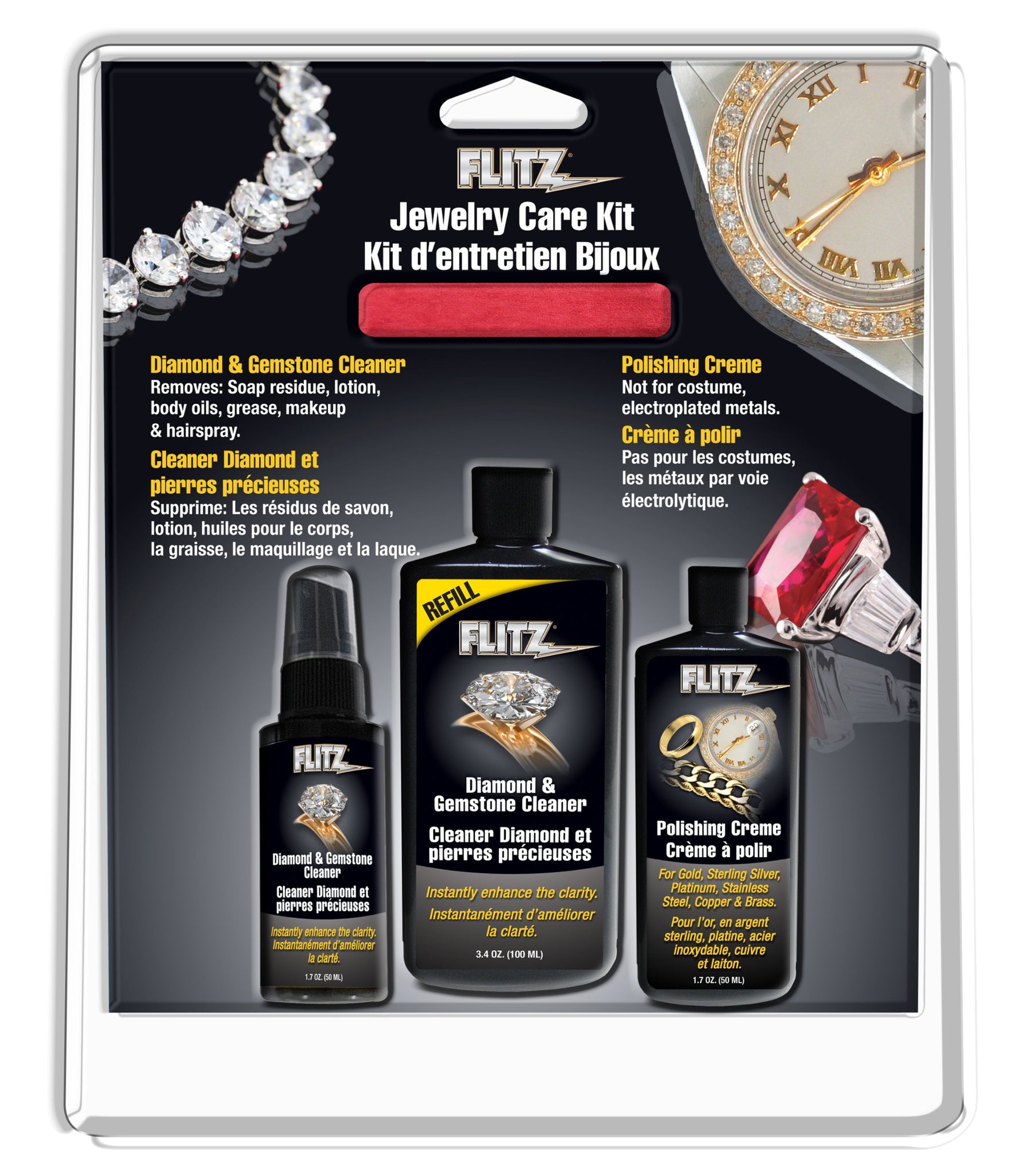 Jewelry Care Kit contains every cleaning product needed for diamonds, gemstones, gold, silver, platinum, watches and more. The Diamond and Gemstone Cleaner will enhance the clarity of your diamonds and gemstones by removing soap and lotion residue and body soil. The Polishing Creme will polish the gold, silver, platinum and stainless to a high luster (not recommended for plated/electroplated metals).