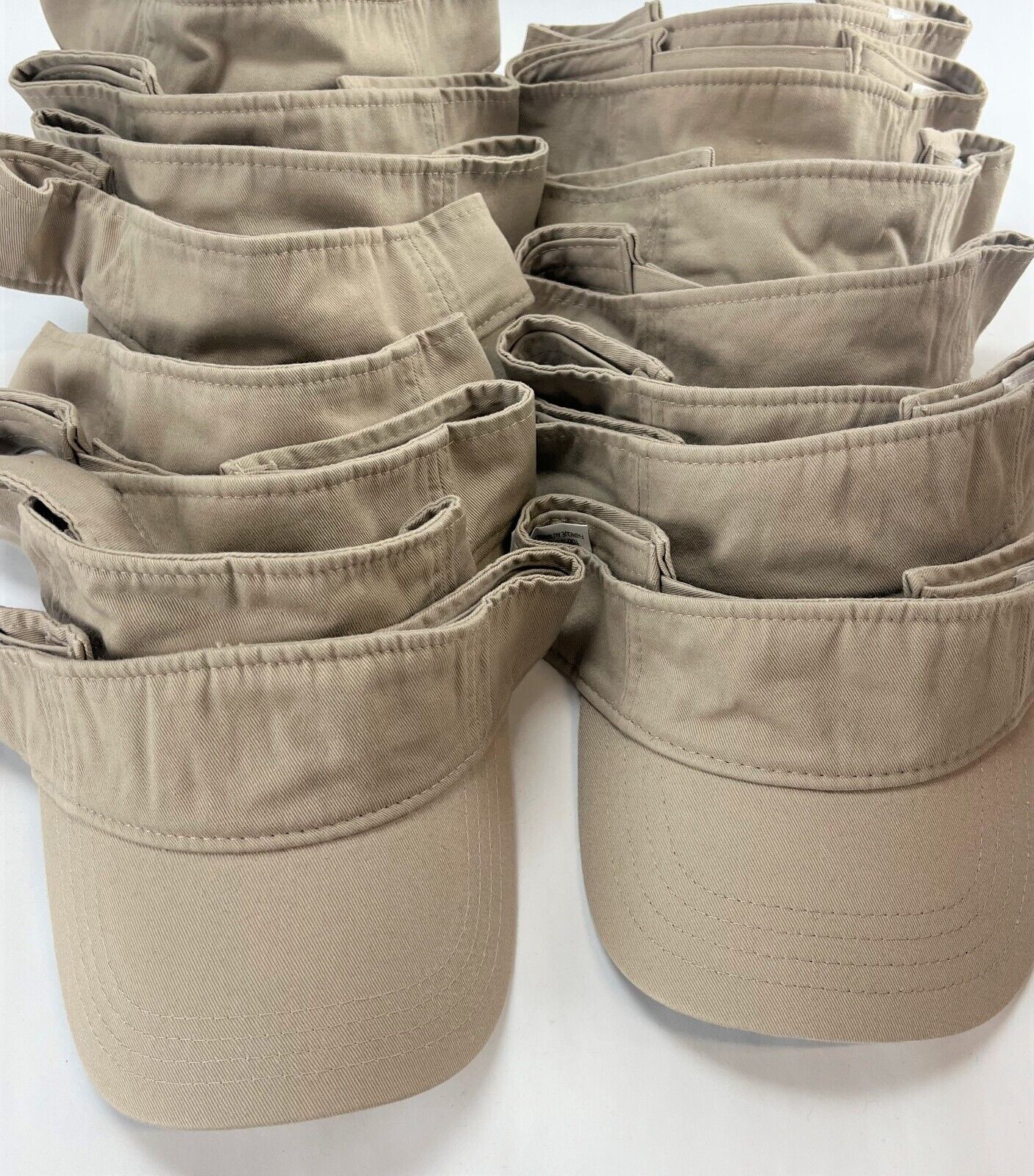 Lot of 50 Khaki Visors - Adjustable Sun Visor Caps Hats for Resale/Branding Unisex - Khaki