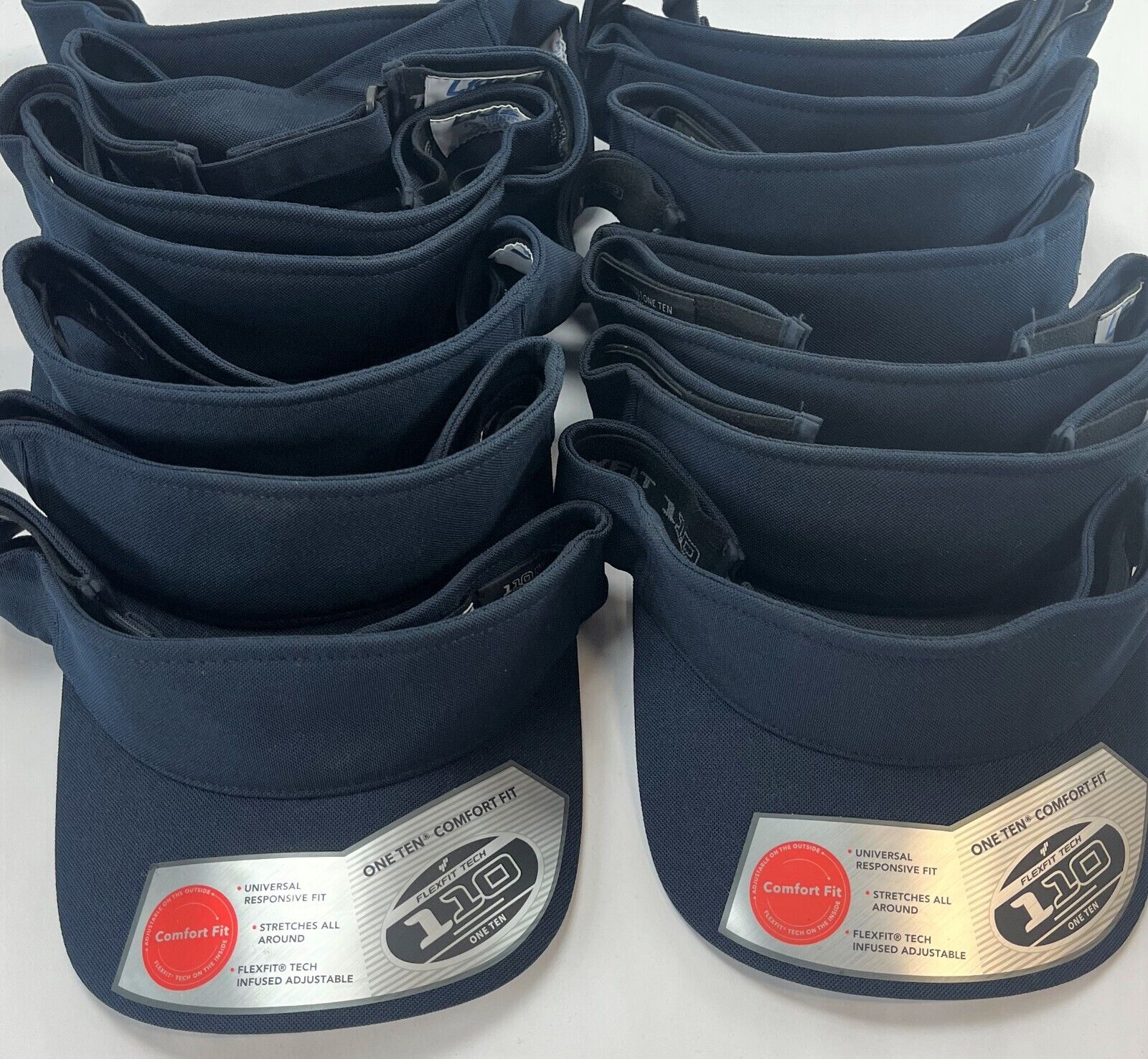 Lot of 50 Lids Visors - 110 Mini Pique Adjustable Adult Comfort Flex-Fit Visor Cap - Navy