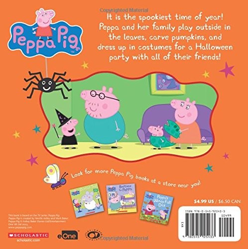 It is the spookiest time of year! Peppa and her family play outside in the leaves, carve pumpkins, and dress up in costumes for a Halloween party with all of their friends!