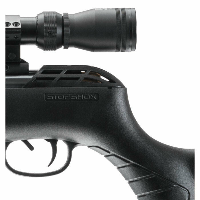 The Umarex Throttle is the first air rifle to include the StopShox vibration reducing system. StopShox is a patent-pending, innovative device specifically designed to absorb shock, vibration and recoil in air rifles. It works in conjunction with a floating action to create a unique combination that systematically reduces the shock created by a break barrel air rifle's spring or gas piston power system. We set out to solve one of the most frustrating problems with powerful air rifles today - the amount of vibration and recoil. Modern pellet rifles powered by strong springs or gas pistons cause two recoils - one to the front and a second to the back. The Umarex StopShox system works in conjunction with a floating stock design to effectively minimize the negative recoil vibrations that cause shooter frustration. The Throttle combines this new recoil absorbing innovation with the Umarex ReAxis gas piston, SilencAir 5-chamber noise suppressor and the Umarex LockDown mount. Chambered in .177 caliber with all of these smooth operating innovations making it ideal for target shooters and small game hunters alike. It comes equipped with a unique, black, all-weather stock, automatic safety, and a 3-9x32 adjustable objective scope. With all of the innovative technology included, the Throttle is a great value.